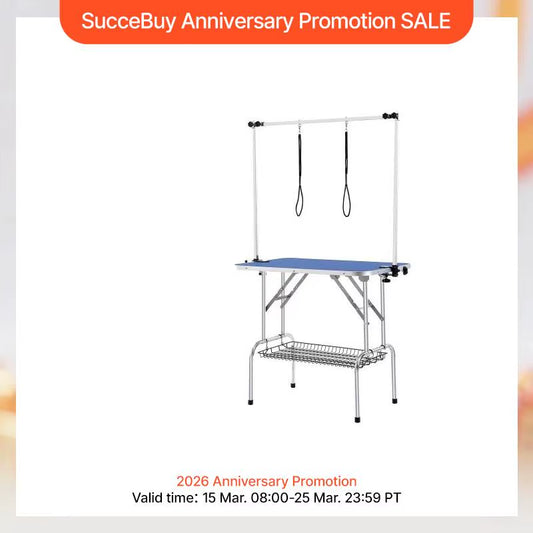 Succebuy Pet Grooming Table Two Arms with Clamp Dog Grooming Station Foldable Stand for Medium Small Dogs with Grooming Loop